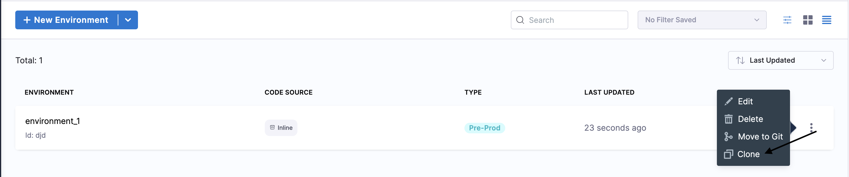 You can clone environment across scopes (i.e from one project to another, project to organization, account to project etc.).