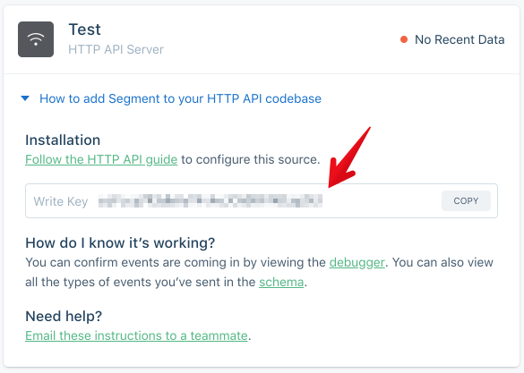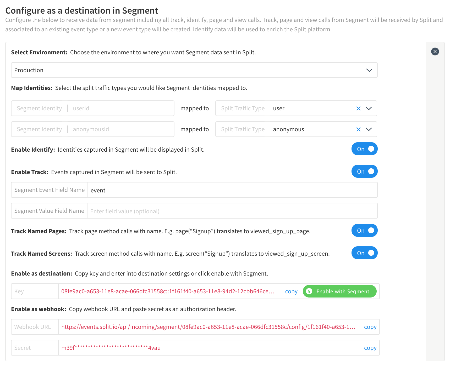 Your integration is now configured. Copy the key or click Enable with Segment.