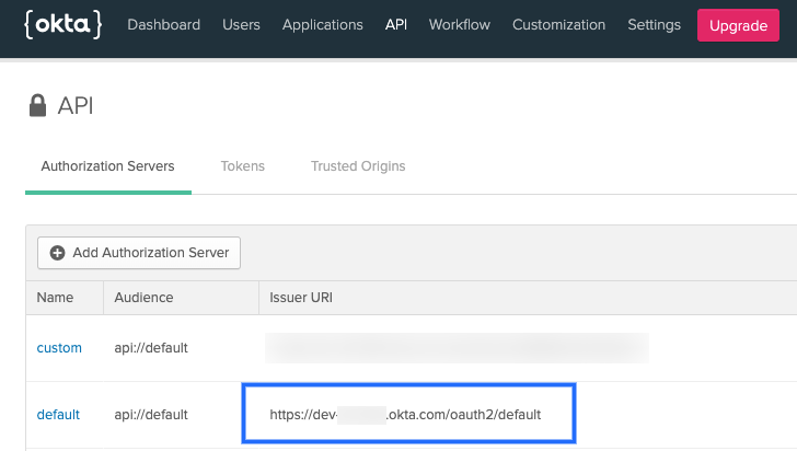 For example, in Okta, in the authentication server settings, select Metadata URI, locate the token_endpoint, and use the token_endpoint URL without the /token part. For example, you would use https://dev-00000.okta.com/oauth2/default/v1 from "token_endpoint":"https://dev-00000.okta.com/oauth2/default/v1/token"