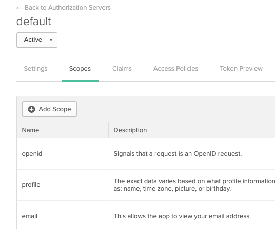 • OIDC Scopes: OIDC scopes are used by an application during authentication to authorize access to a user's details, like name and picture. In Okta, you can find them in the Authorization Server Scopes tab.