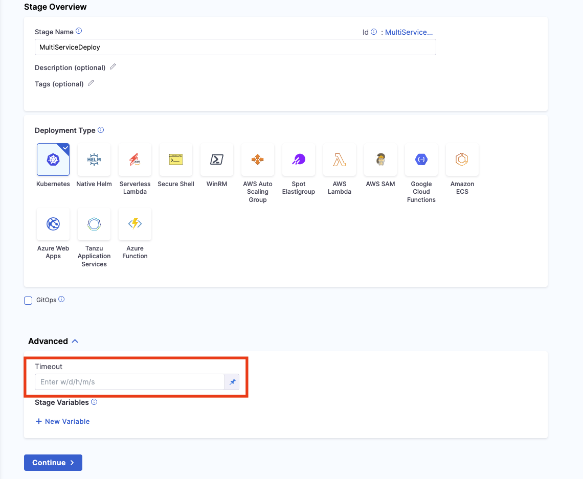 Find the stage Timeout settings under Overview > Advanced when configuring your stage.