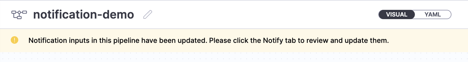 Notification inputs in this pipeline have been updated. Please click the Notify tab to review and update them.