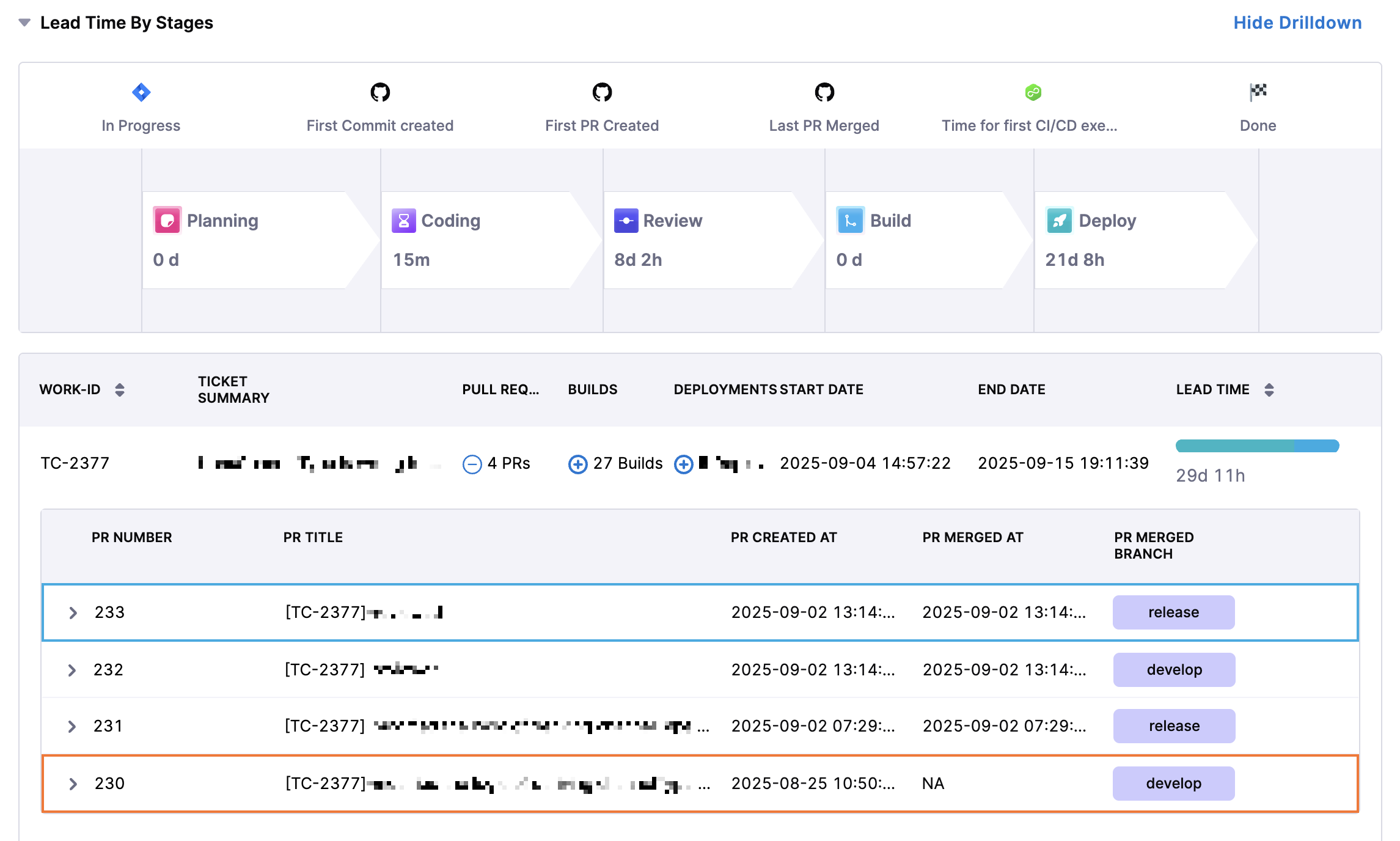 • View Breakdown: Provides a detailed breakdown of lead time by team.