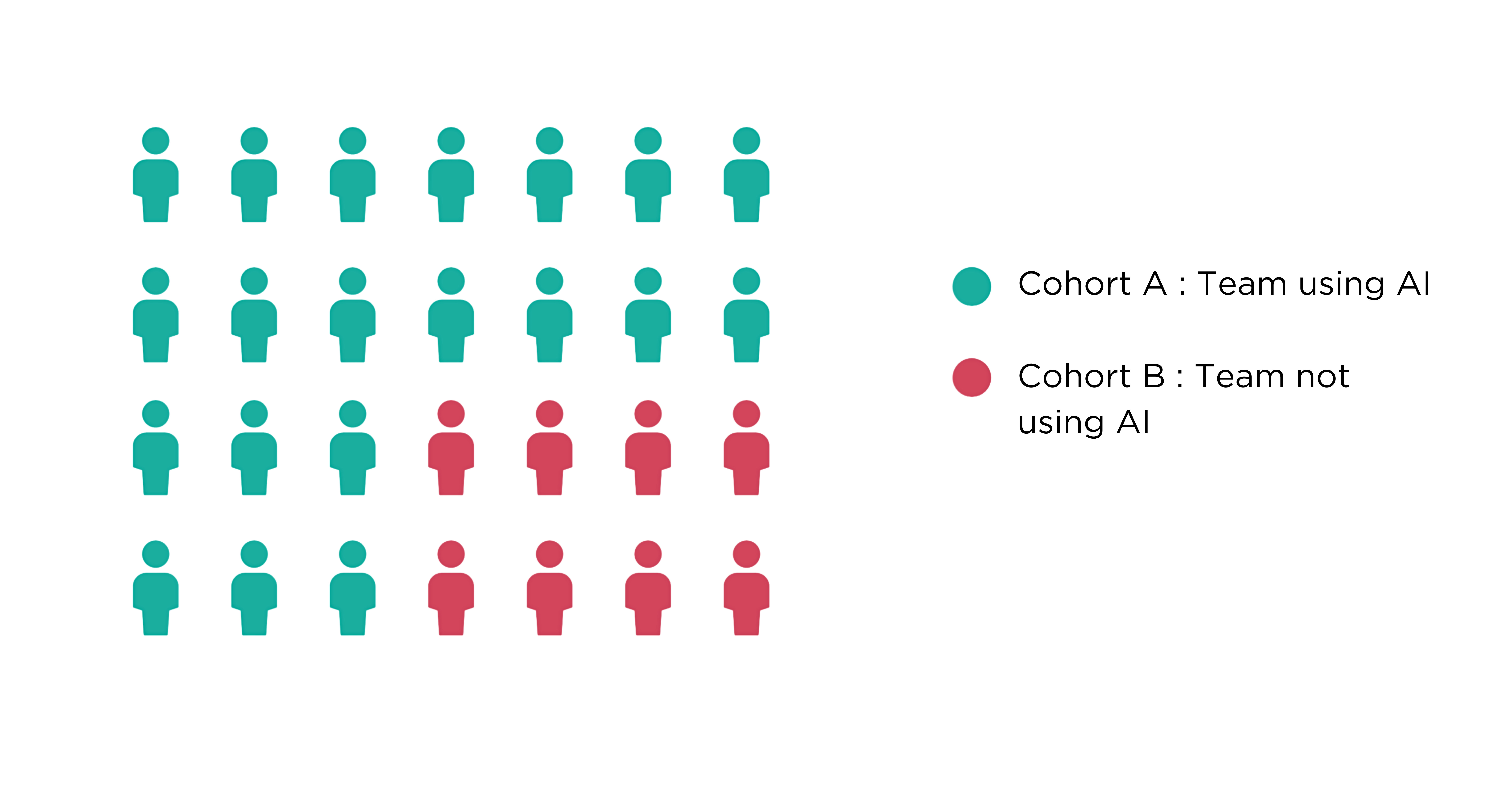 Cohorts are just groups we compare to see how AI tools affect teams. Every report requires you to create two cohorts i.e. split teams into two clear groups: